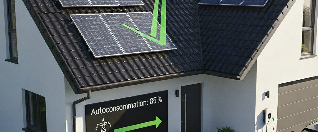 - l’installation doit intégrer un système de gestion de l’énergie (EMS) qui permet de synchroniser la consommation avec la production solaire (chauffage, eau chaude, borne de recharge, etc.).